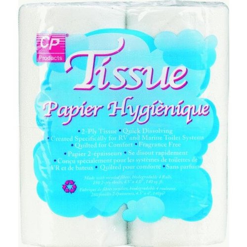 Made especially for marine or RV toilet systems. No need for tissue digester. Made from 100% recycled fiber. Nonbleached. Contains no dyes or perfumes. 4 rolls per pack.